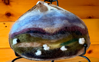 Well, it worked! Yesterday I opened it and found just dye, no mold or anything nasty. I heated it up, dyed some more wool felt (putting some in iron water to modify and darken), and then set about making acorn ink by adding some gum arabic to thicken it. I put some of the ink in a separate container and added ferrous sulfate to darken it. What fun results I had! Just take a look for yourself: